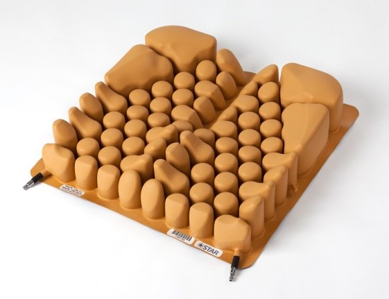 Células pré-isquiáticas: células de aire inclinadas para prevenir el deslizamiento hacia delante. Abductor: Incorporado en el Almohadón para una mejor estabilización de la pelvis. Extremidades pélvicas: área en relieve para ayudar a posicionar las caderas en una posición medio-lateral. DETALLE TÉCNICOAlmohadonde aire en Neoprene, flotacion seca, con celda de aire contorneadas sistema galaxy. |