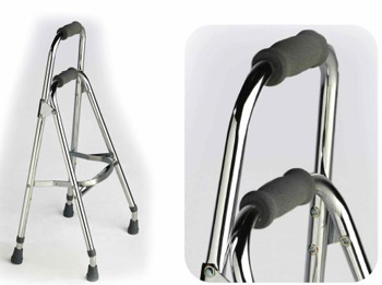 Fabricado en aluminio ultraliviano Terminación: Anodizado Color: Plateado Fácilmente plegable Regulable en altura: 75 – 87cm Regatones: 19mm gris