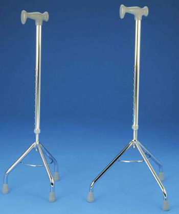 Asta de aluminio: Terminación: Anodizado Color: Plateado Mango T de plástico Base de acero cromado con aro de refuerzo Regatones: 16mm gris • Base chica Regulable en altura: 73 - 96cm • Base grande Regulable en altura: 78 - 101cm
