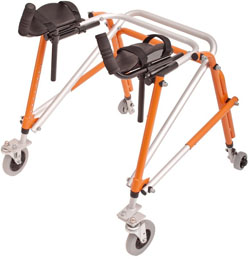 Este modelo de andador fue diseñado en principio para usuarios que necesitan mínimos requisitos para lograr la marcha, pero con el tiempo desarrollamos una serie de accesorios que hacen posible el uso de este andador en un mayor rango de pacientes. -Ruedas Traseras de 60mm con sistema antirretroceso. -Accesorios no incluidos: apoyo de antebrazor con toma, chiripa, soporte de pelvis, toma anterior.
