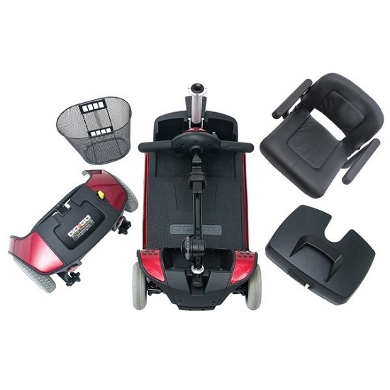 Scooter Motorizado de 4 ruedas desarmable para transporte con baterias de 18 Amperes. Parte más pesada para transporte 15 KG. Peso Maximo del paciente 136 kg. Velocidad Maxima 6.5 km/h.