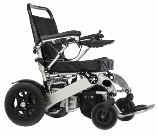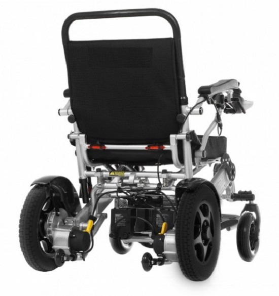 Estructura y marco construidos en aluminio con sistema de plegado facil y rápido. Regulación de velocidad, indicador de carga de bateria y sistema de alarma en el joystick
